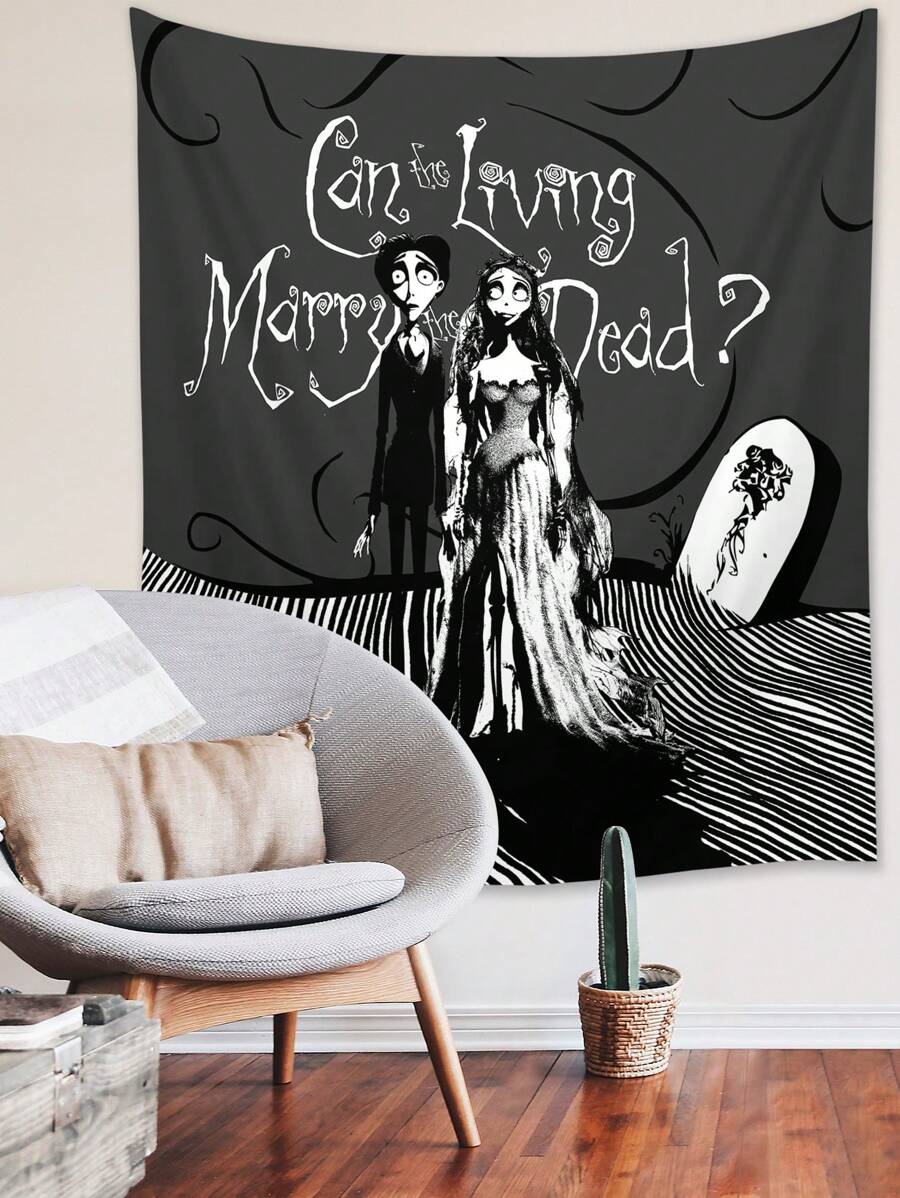 Corpse Bride | ROMWE 1 pieza con estampado de letra y figura Tapiz , oscuro Tapiz póster Colgante de pared para dormitorio estético