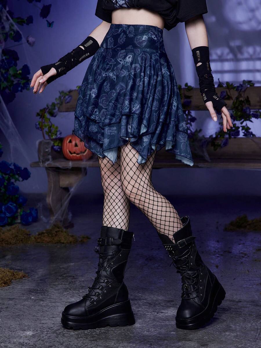 Corpse Bride | ROMWE Falda con estampado floral bajo asimétrico