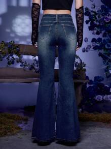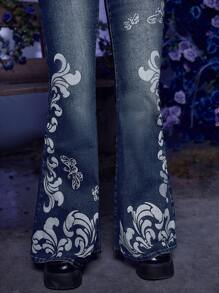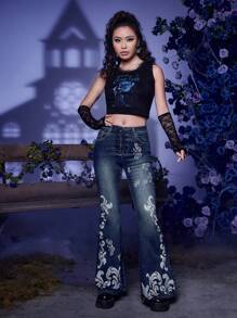 Corpse Bride | ROMWE Jeans de pierna amplia con estampado floral con cordón delantero