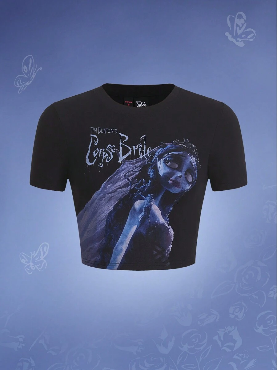 Corpse Bride | ROMWE Camiseta con estampado de letra y figura