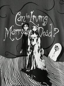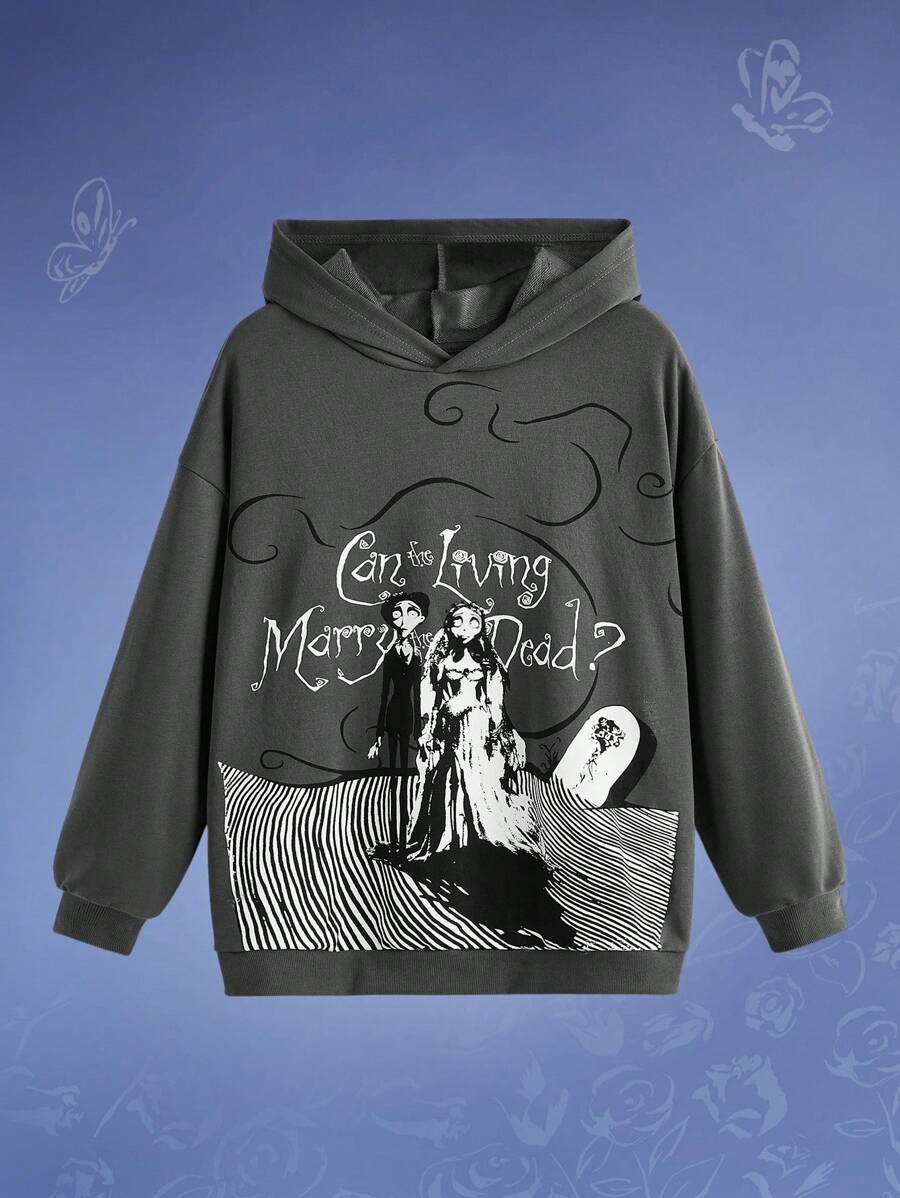 Corpse Bride | ROMWE Sudadera Con Capucha Con Diseño Gráfico De Lema Y Figura De Dibujos Animados Con Hombros Caídos