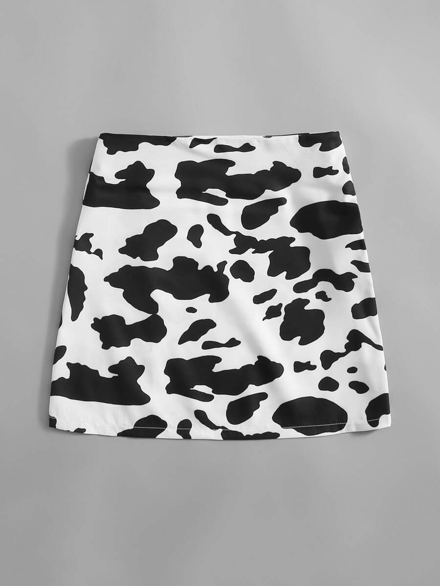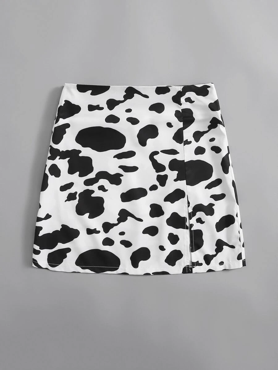 Falda con abertura con estampado de vaca