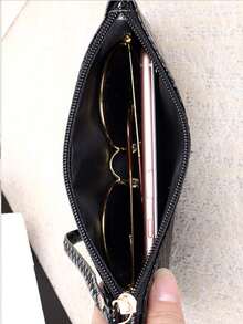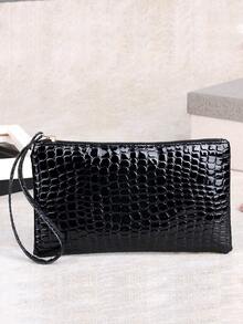 Bolsa cuadrada con cocodrilo en relieve con muñequera