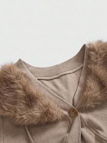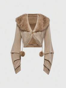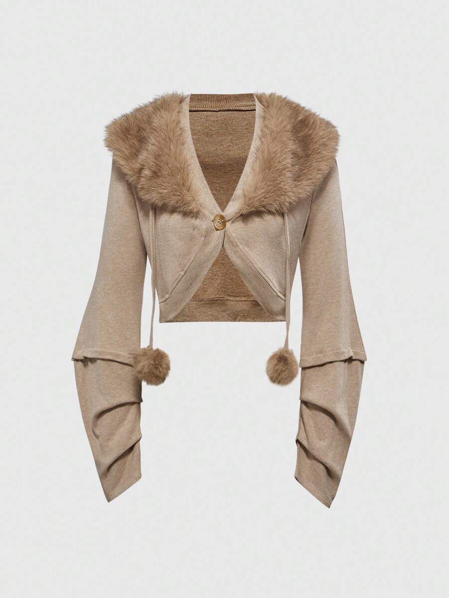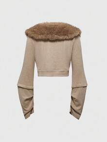 Grunge Punk Cárdigan de punto corto con cuello oversize y mangas abullonadas