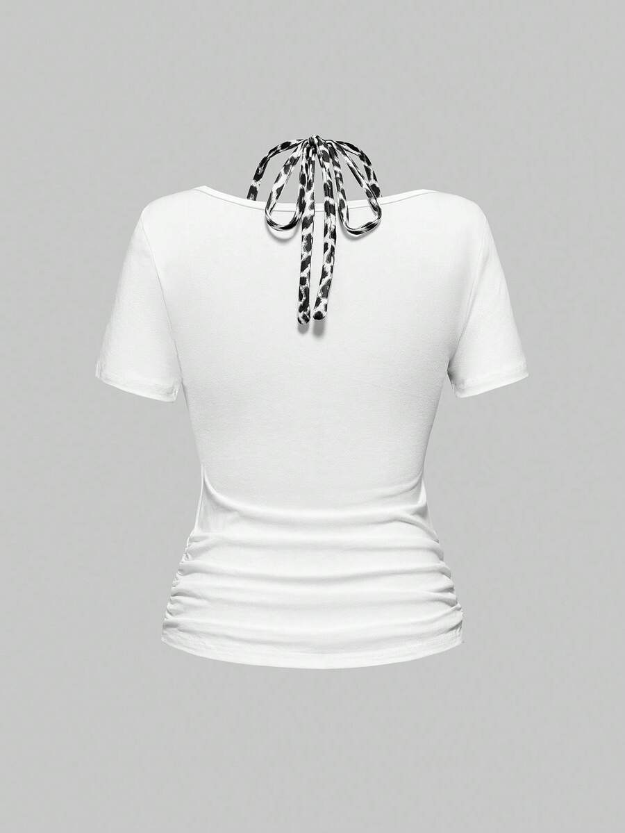 Grunge Punk Camiseta ajustada de mujer con estampado de calavera y cruz, y estampado de leopardo 2 en 1, adecuada para conciertos y festivales