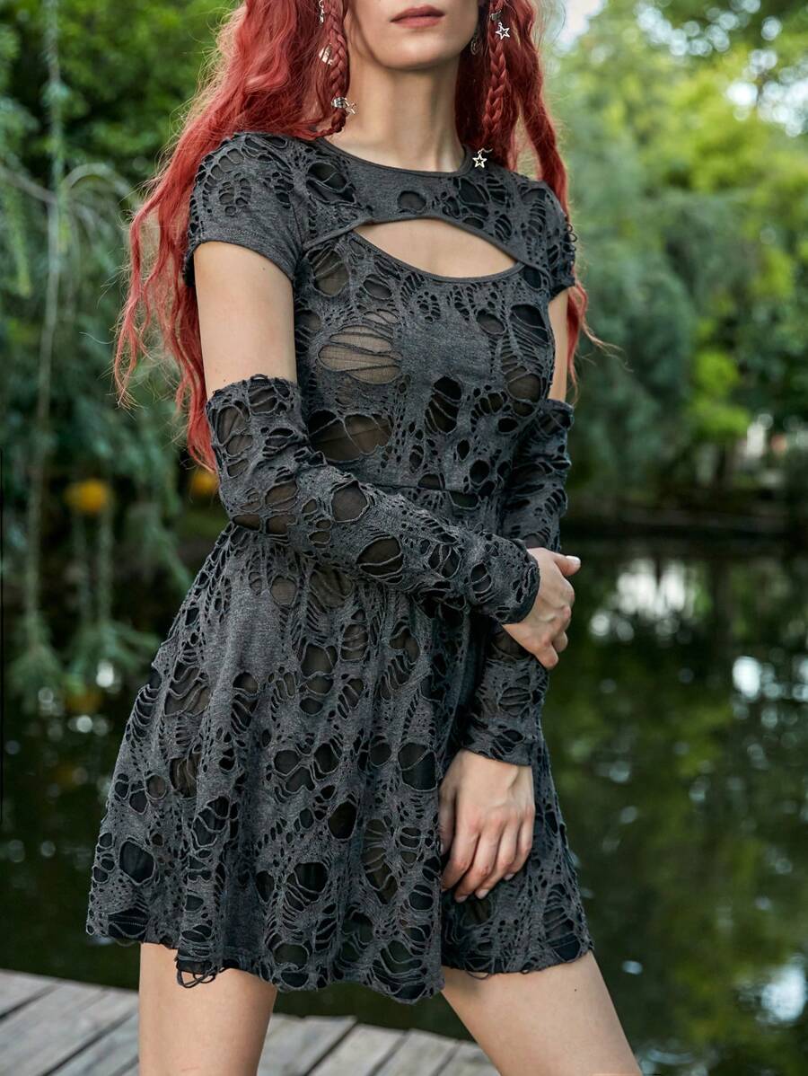 Vestido con abertura desgarro con mangas de brazo