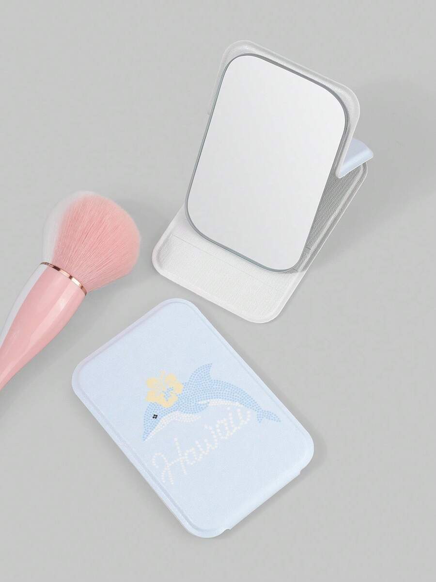 Kawaii Espejo de vanidad plegable y portátil con diseños minimalistas y lindos de cereza, fresa, moño, fruta, océano, concha marina y estrella de mar, adecuado para viajes y regalos