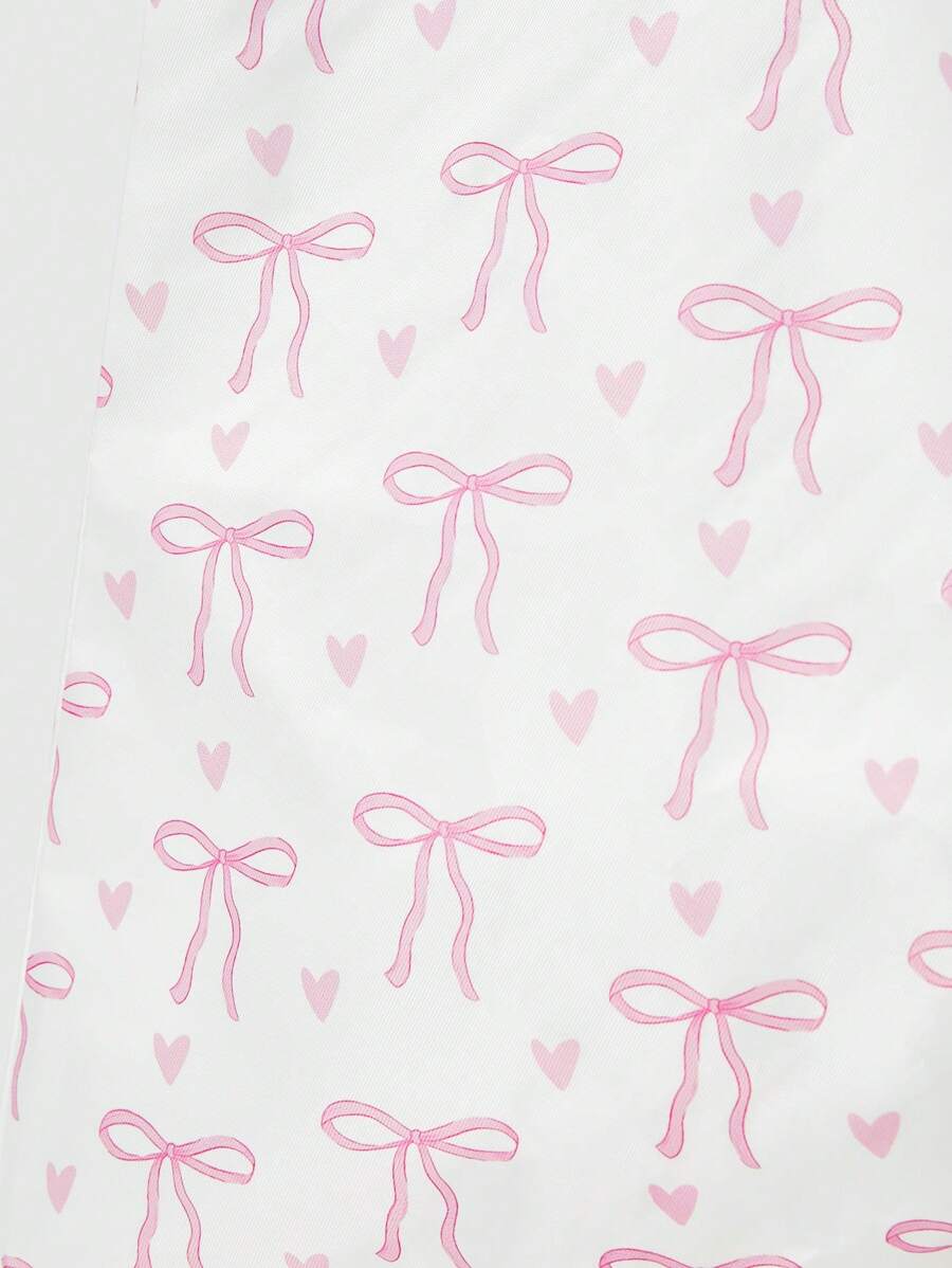 Kawaii Bolsa de almacenamiento plegable de moda con estampado de moño rosado y corazones