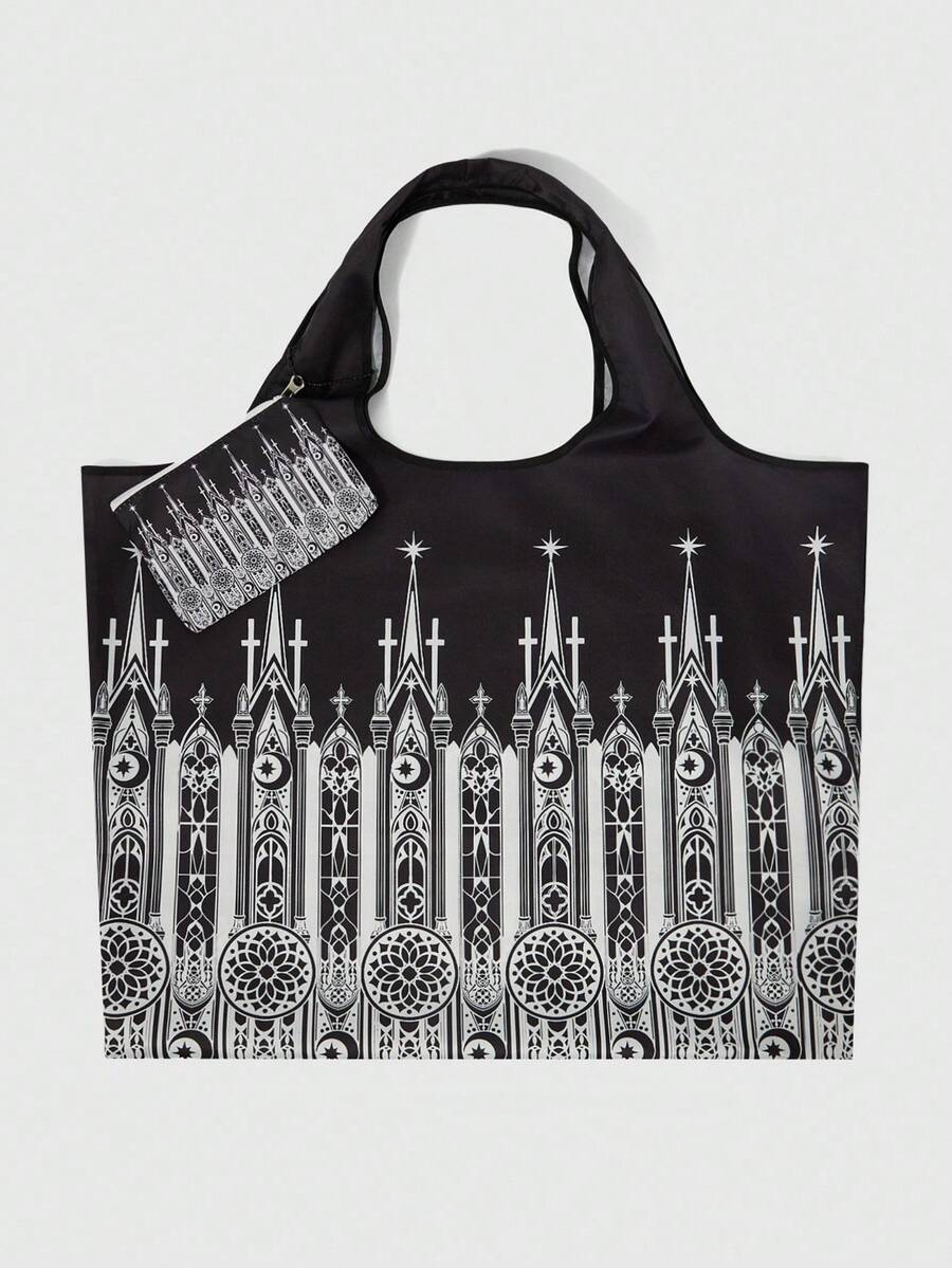 Goth Bolso de mano portátil de mujer con estampado de castillo gótico oscuro, perfecto para fiestas de Halloween, a juego con disfraces de Halloween