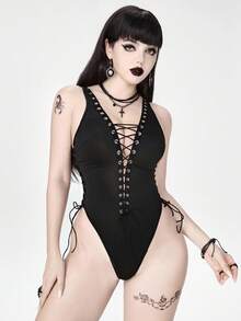 Grunge Punk Mono sexy con corset y cordones de estilo punk oscuro
