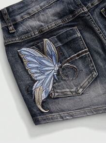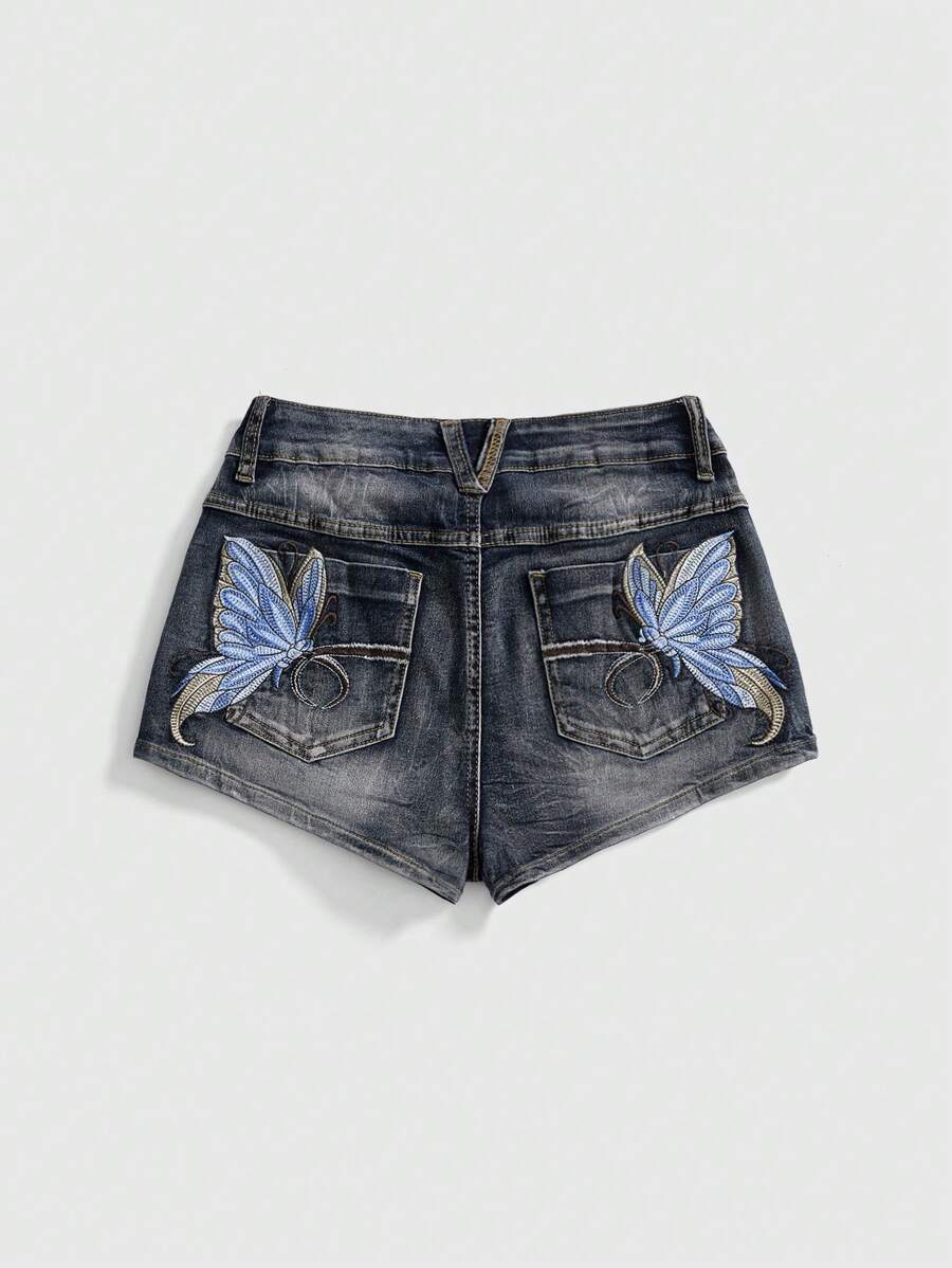 Fairycore Short de mezclilla mini con bordado de mariposa en estilo vintage desgastado, ropa de calle sexy, para verano