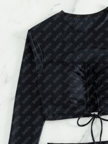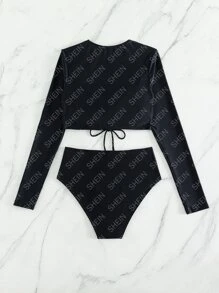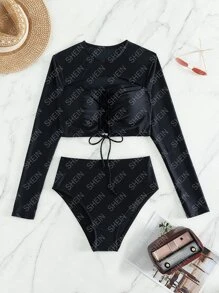 Conjunto de bikini de verano para playa con cordones delanteros y cintura alta