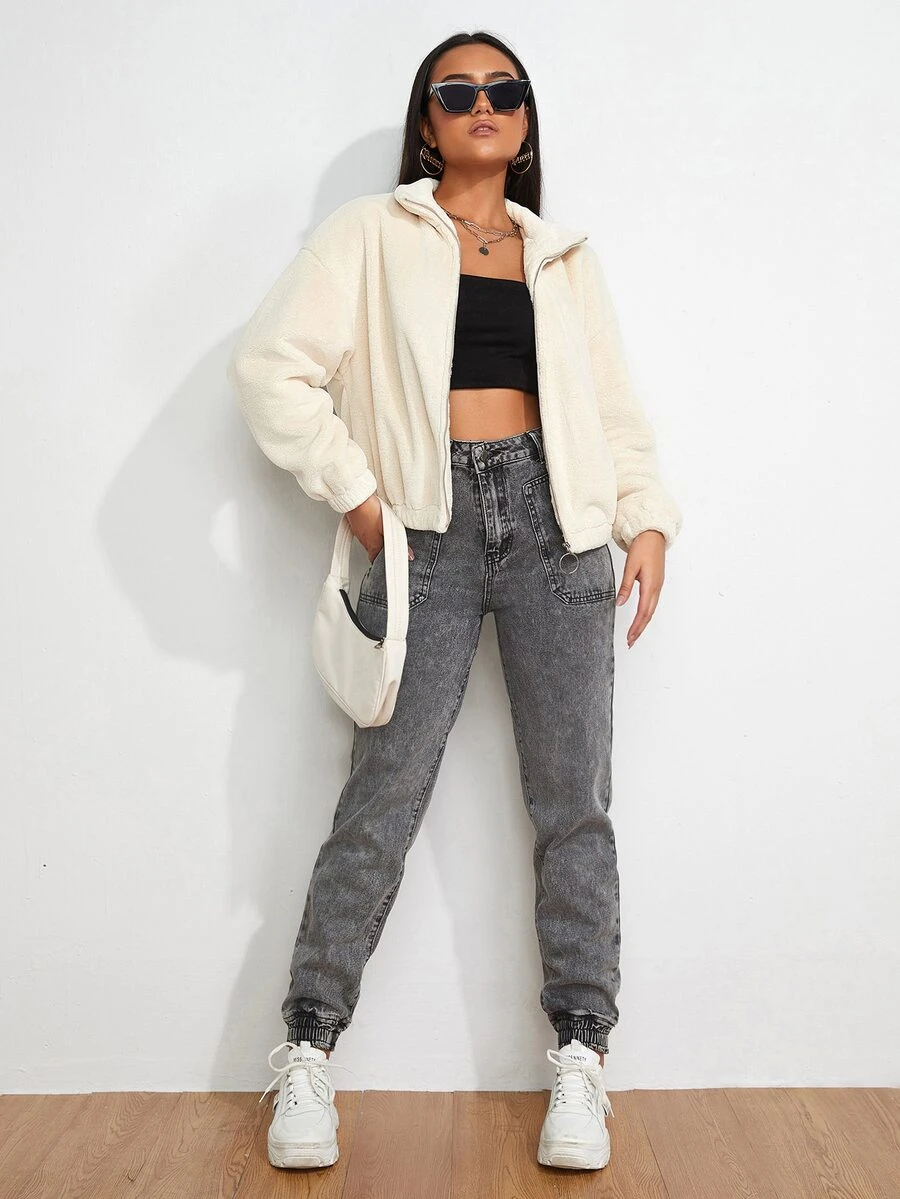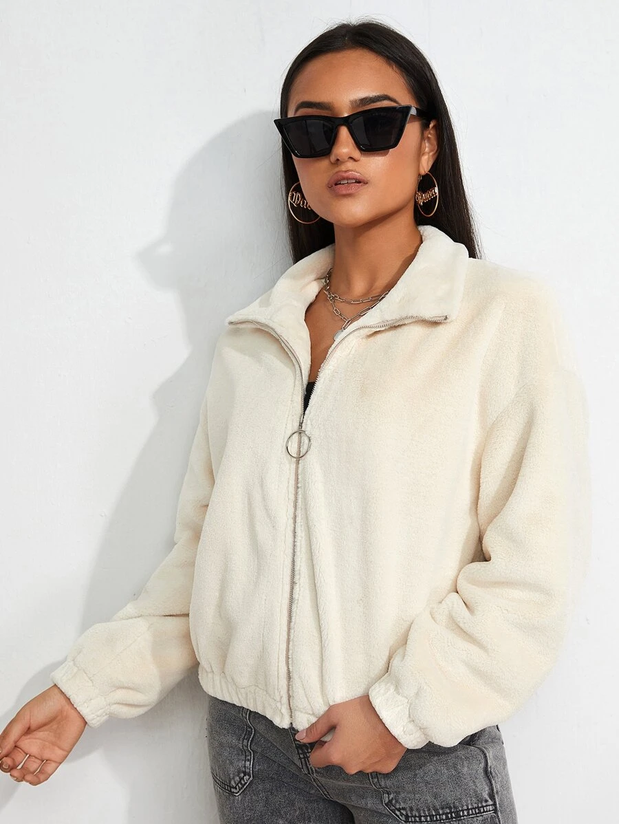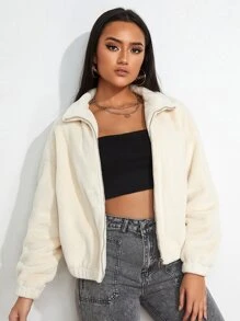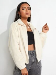 Abrigo de hombros caídos con cremallera de pelito