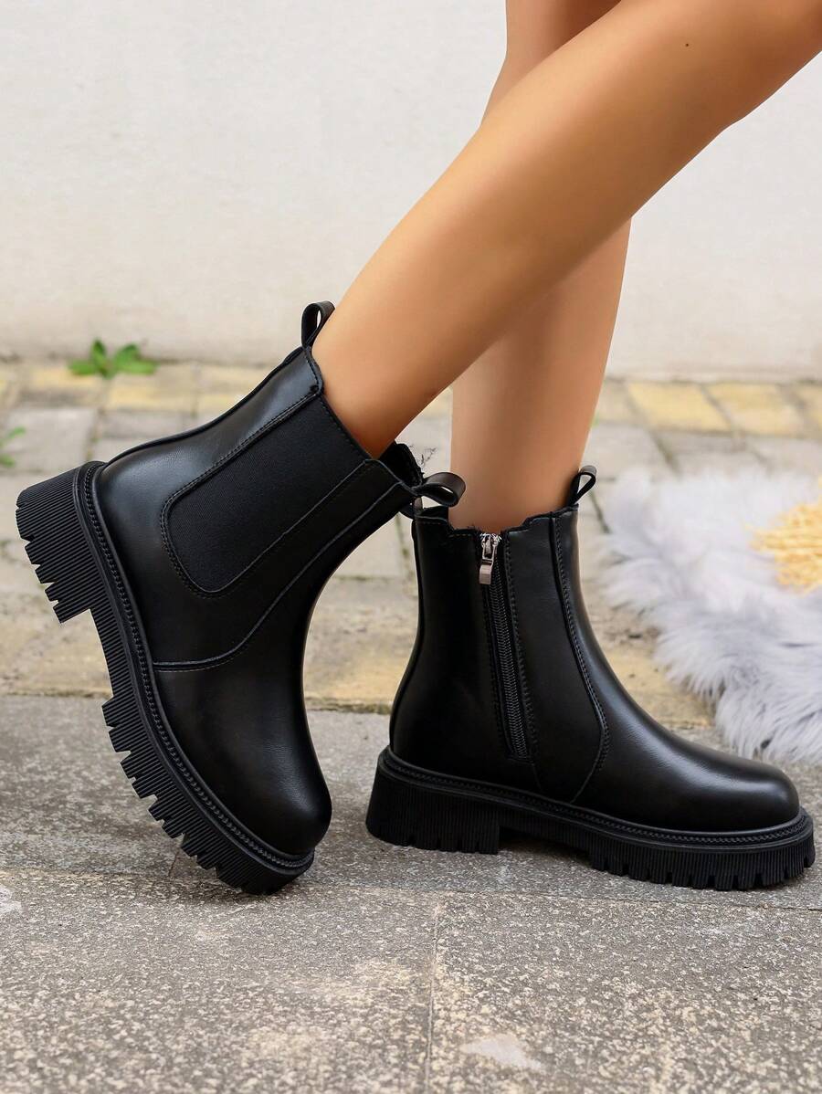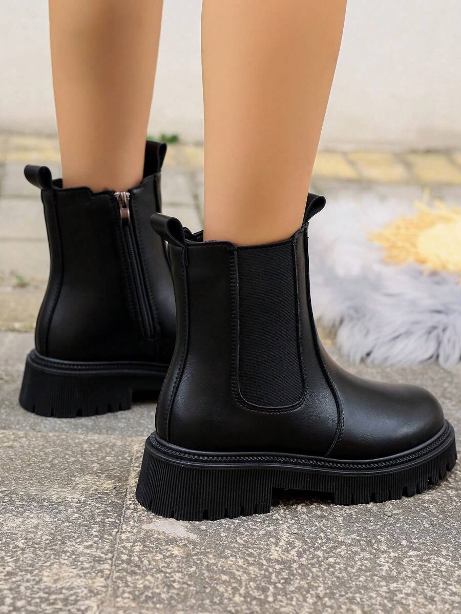 elástico cremallera lateral clásico negro coreano versión ajustado mitad de la pantorrilla plano estilo británico tubo Botas , otoño con invierno de mujeres de moda Botas