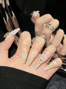 Fairycore 10 Piezas Uñas Postizas De Diseño En 3d Con Diamante De Imitación Decorativo Para Uñas Largas En Forma De Ataúd