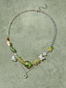Fairycore 1 pieza Collar con colgante moda aleación de zinc con corazón & con cuenta para mujeres para decoración diaria