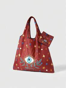 Fairycore 1 pieza Bolsa de almacenamiento con diseño celestial con forma de ojo, bolsa plegable de gran capacidad con monedero