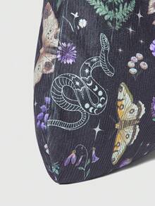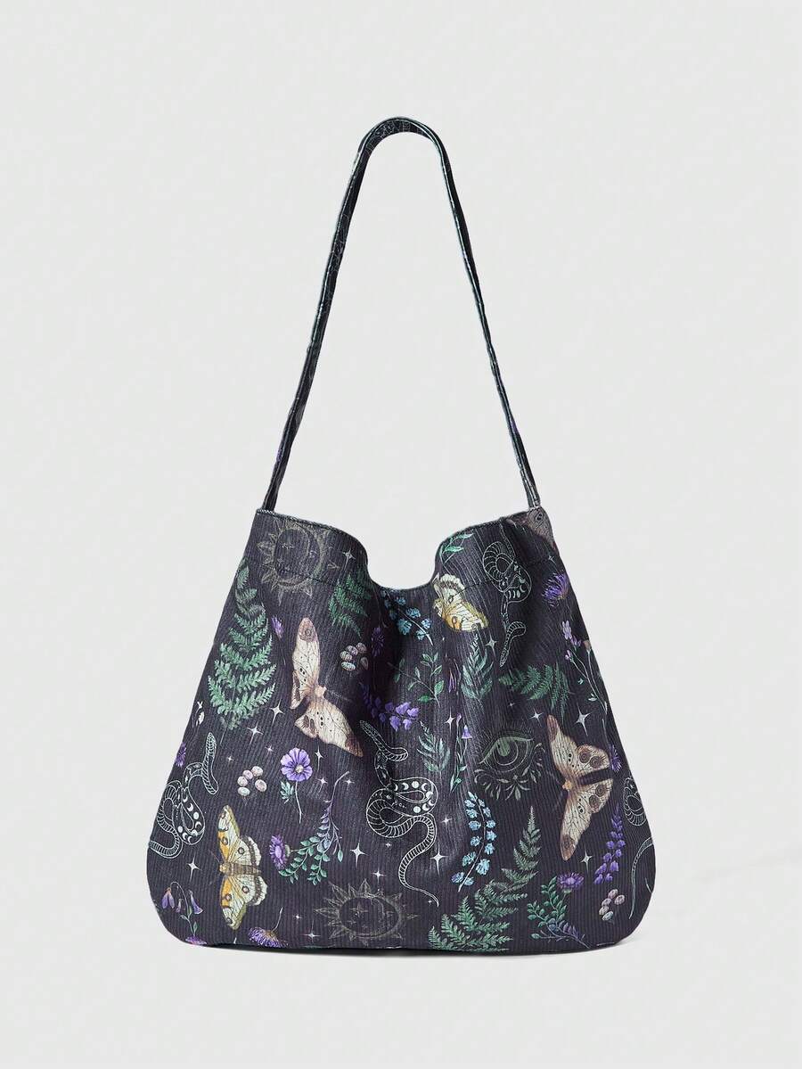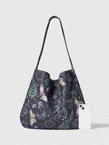 Fairycore 1 pieza Bolso de hombro de gran capacidad con estampado de mariposas florales, adecuado para acampar, viajar, comprar, ir a la escuela, trabajar y talla grande