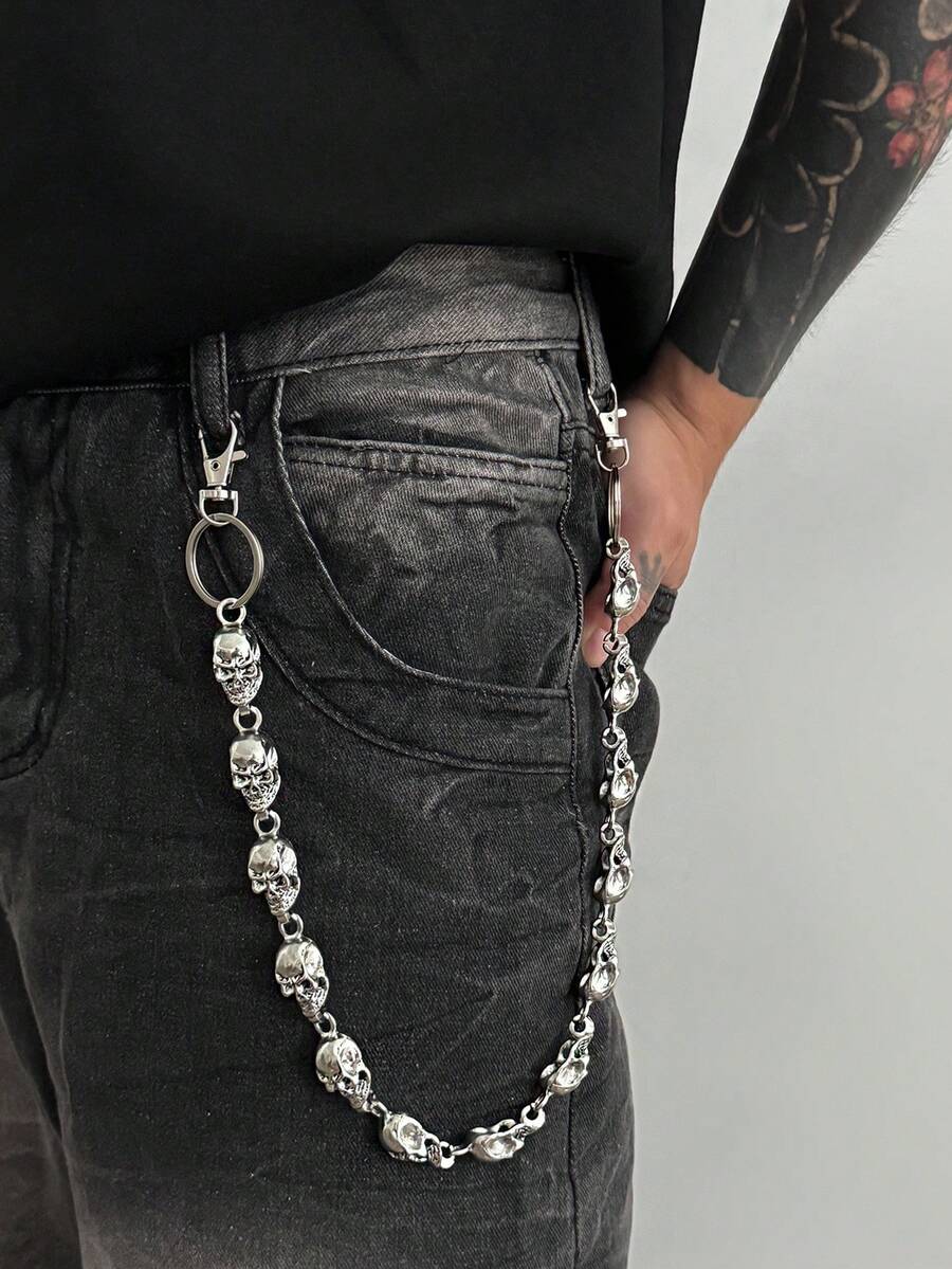 Fairycore 1 pieza Cadena de cintura de calavera gruesa estilo vintage punk, cadena corporal geométrica personalizada de hip hop para hombres para decoración de pantalones
