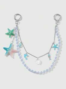 Fairycore 1 pieza Accesorio para bolso o llavero minimalista y elegante de la serie del océano azul, hecho a mano con cristal azul, perla falsa y colgante de estrella de mar de resina, adecuado para mujeres, uso diario y como regalo de vacaciones