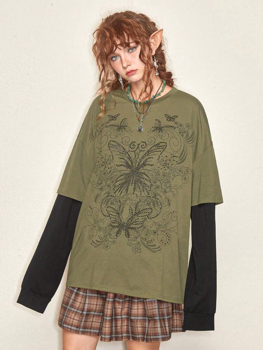 Fairycore Camiseta 2 en 1 con estampado de mariposa