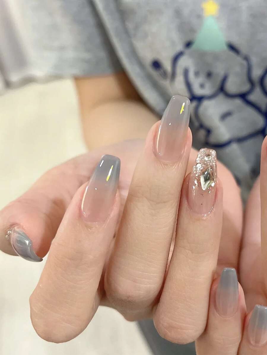 Fairycore 24 piezas Uña postiza ataúd de ombré & 1 hoja de cinta para uñas