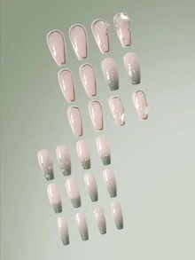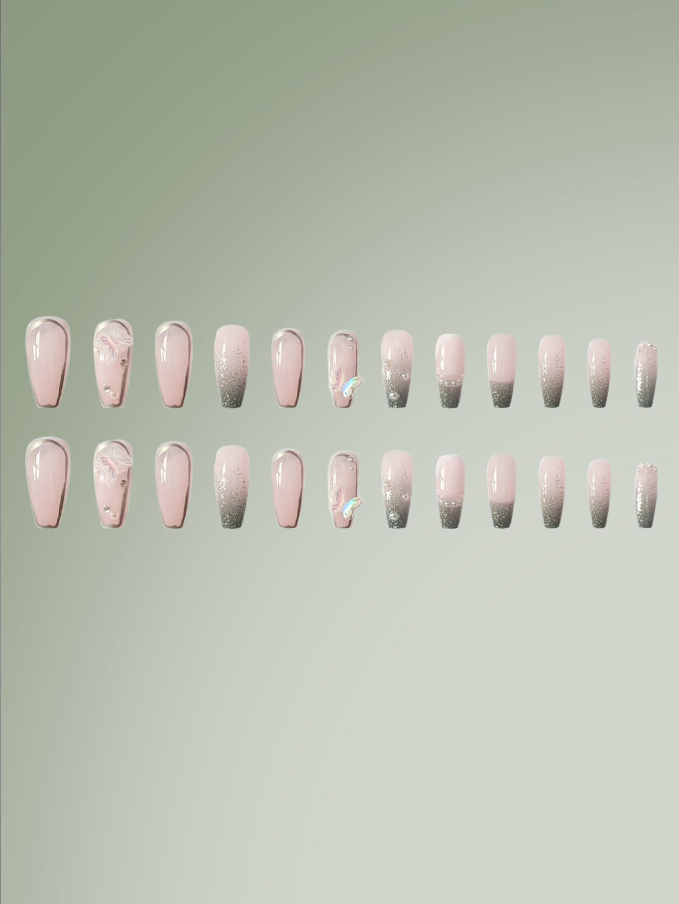 Fairycore 24 piezas largo ataúd con diseño de mariposa Uña postiza & 1 hoja cinta
