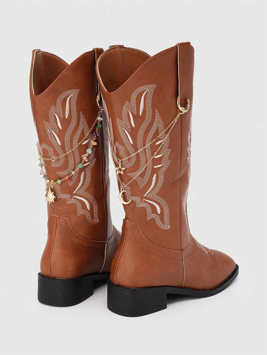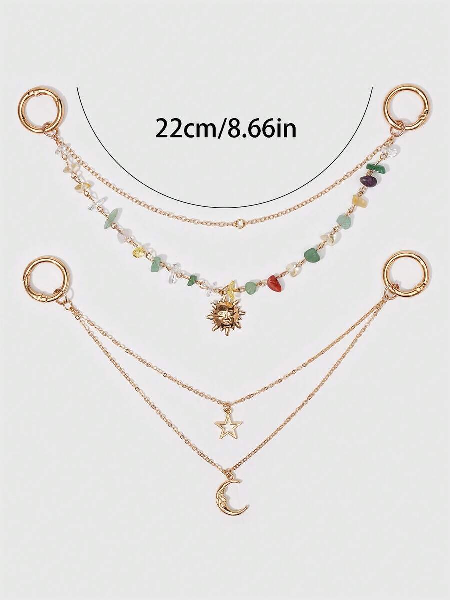 Fairycore 2 piezas Cadena decorativa de estilo bohemio con colgante de estrella y luna de cristal colorido, adecuado para decorar botas altas, elevar el estilo de las botas, regalo para Ramadán/cumpleaños/festividades