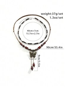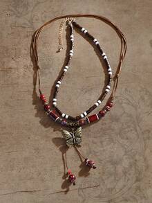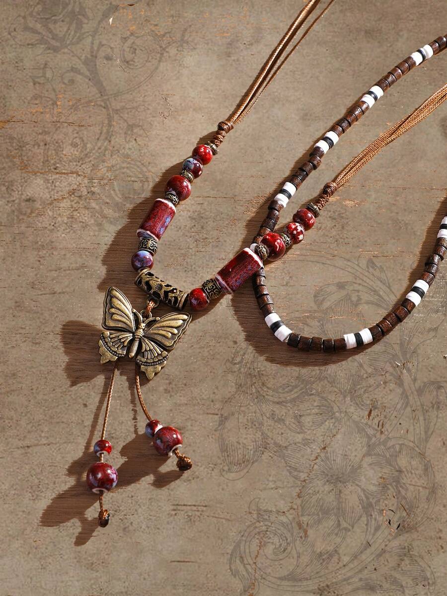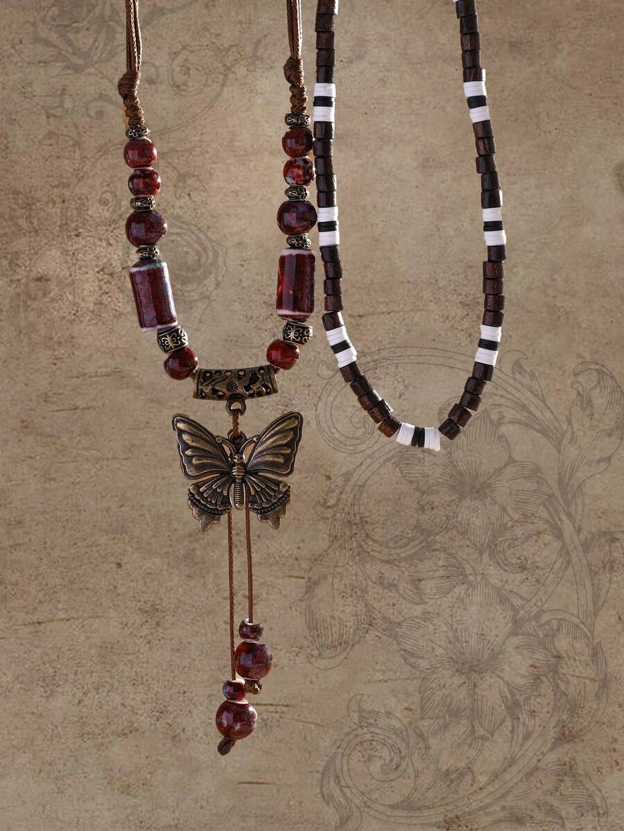 Fairycore 2 piezas/set Collar con cuenta vintage creativo estilo con mariposa & con fleco colgante de madera