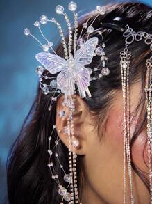 Fairycore Set de 3 pinzas para el cabello etéreas: pinza con borla de cristal en forma de mariposa, pinza para el cabello con borla, accesorios para el cabello estilo Mori