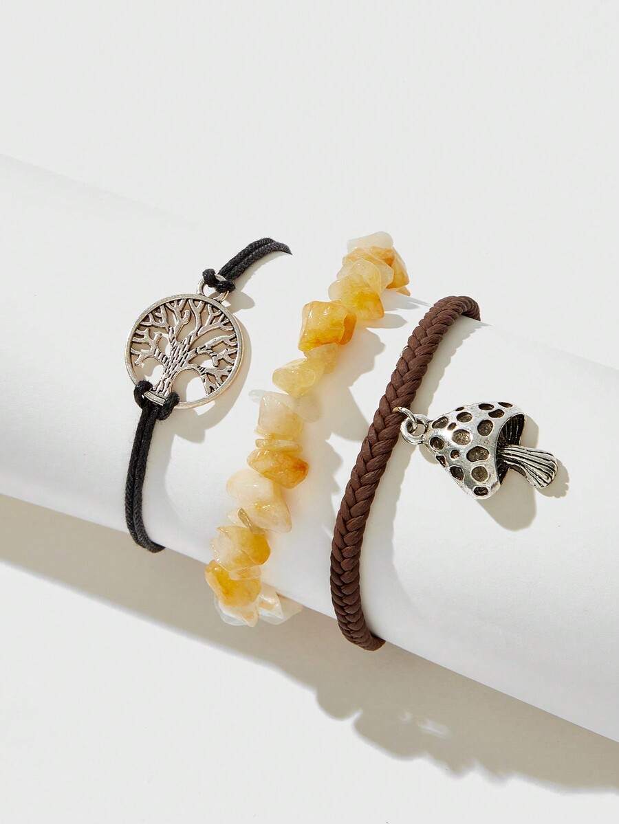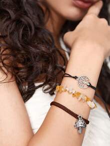 Fairycore 3 Piezas/set Pulsera Trenzada Con Cuentas De Cristal Y Colgante De Seta De Estilo Moderno Y Fresco