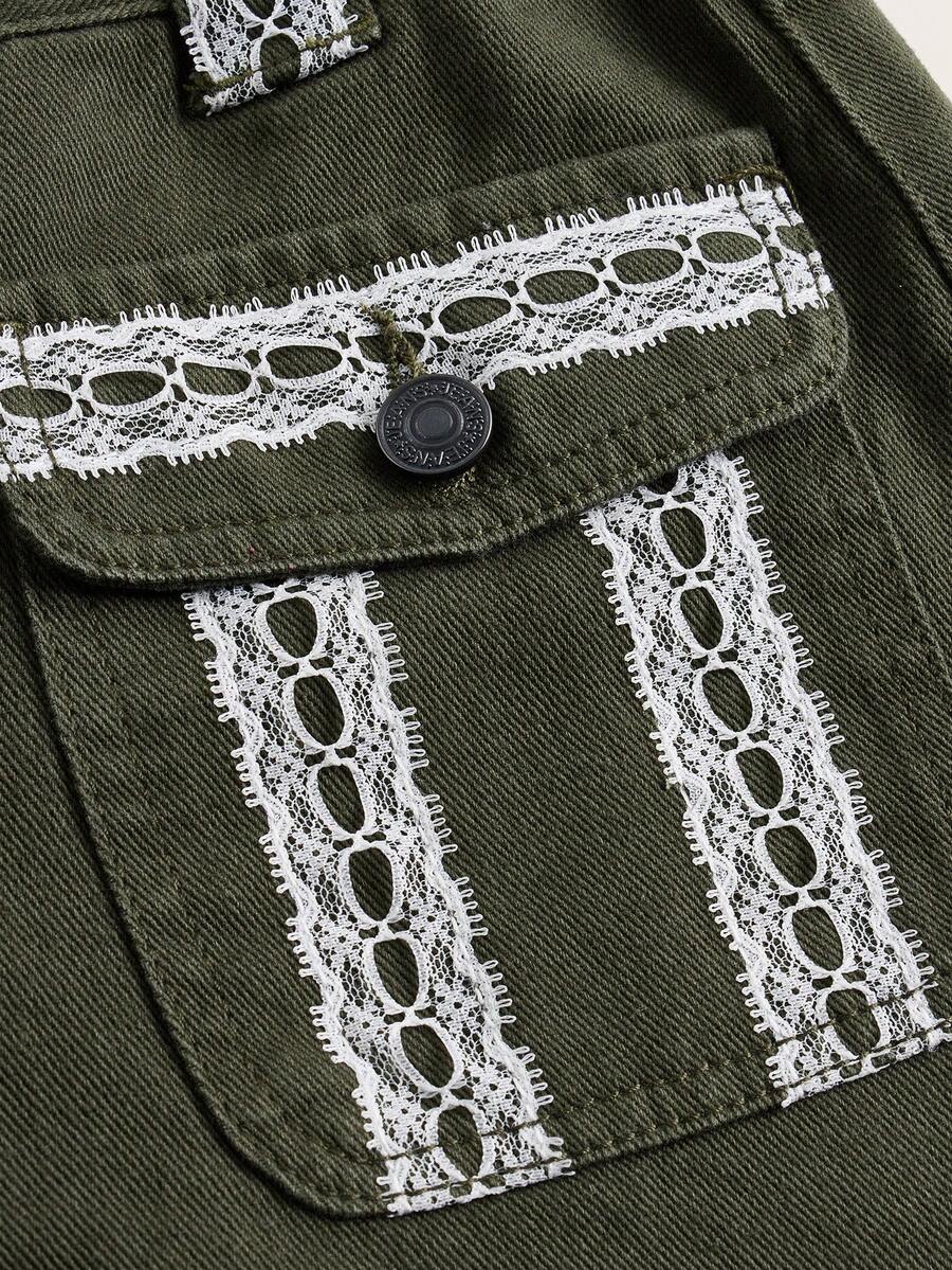 Fairycore Shorts en mezclilla con encaje en contraste con bolsillo con solapa