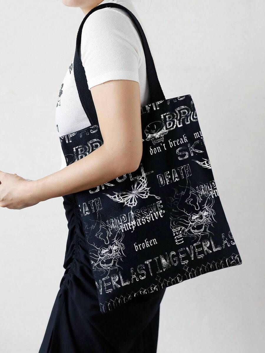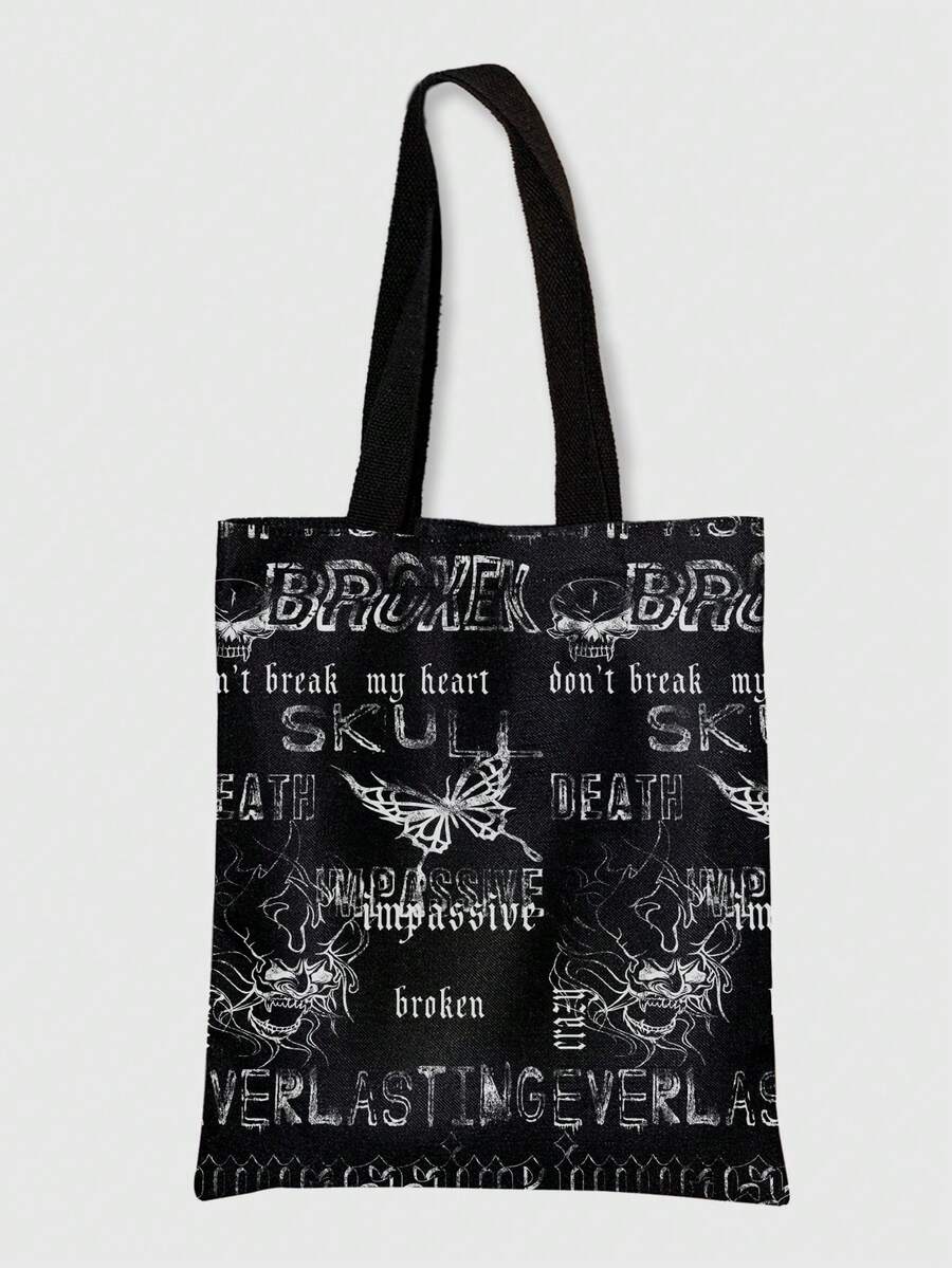 Fairycore Bolsa de lona creativo gótico con mariposa doble faz con estampado hombro