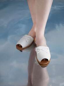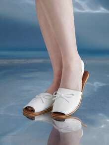 Fairycore Sirena Zapatillas planas para mujeres moda beige , Zapatos planos destalonados con diseño de lazo de punta abierta