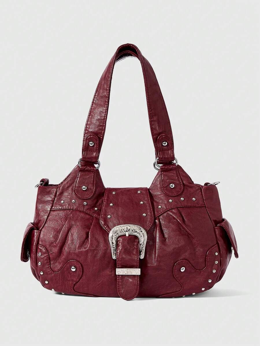 Fairycore Bolso de hombro de piel de PU con decoración de remaches, elegante para el uso diario