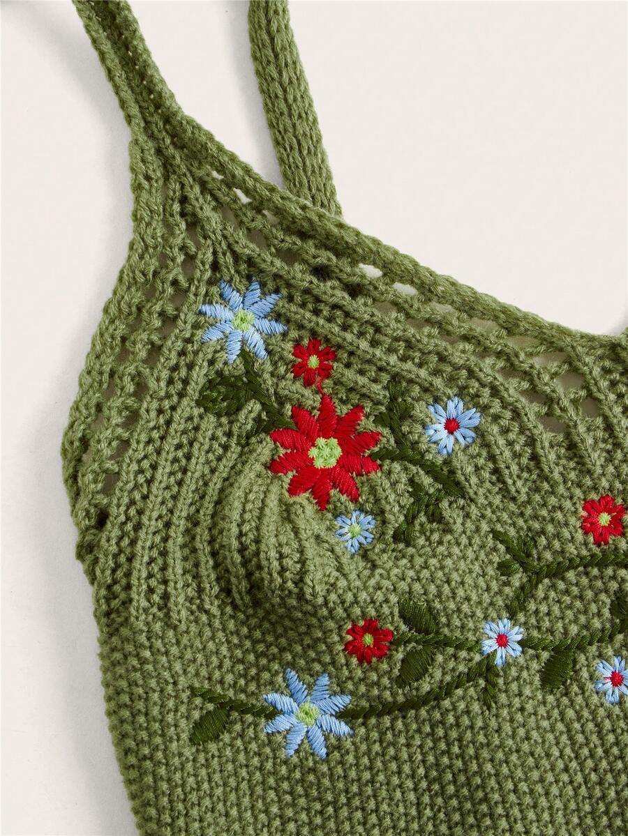 Fairycore Top tejido de tirantes con bordado floral de hombros con cordón