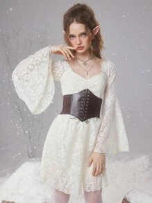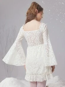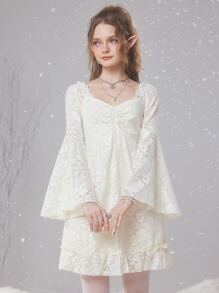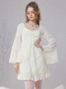 Fairycore Vestido de manga con volante bajo con fruncido con encaje sin corsé