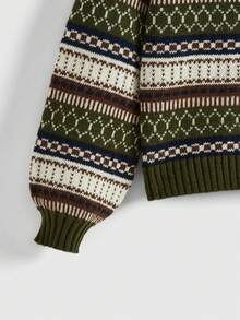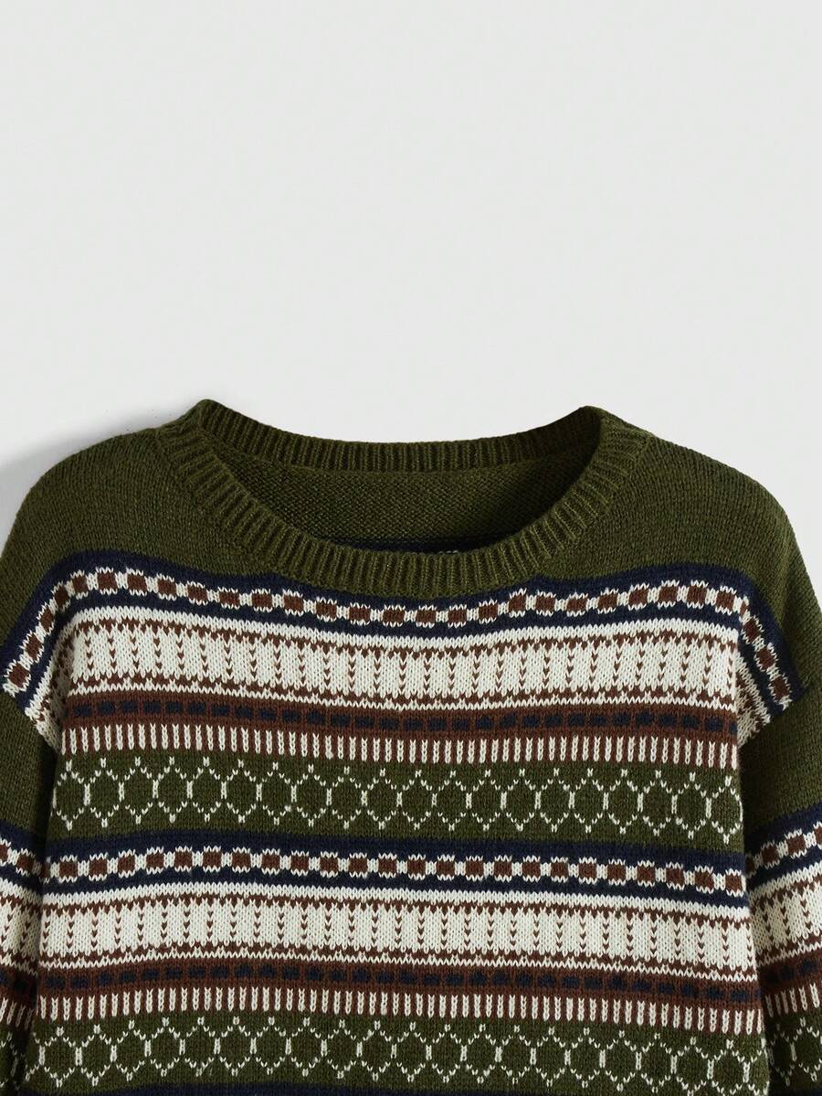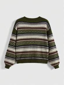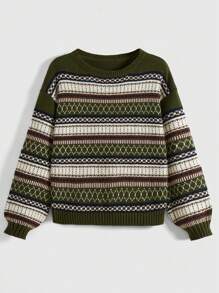 Fairycore Jersey De Cuello Redondo Con Patrón Geométrico Y Mangas De Linterna
