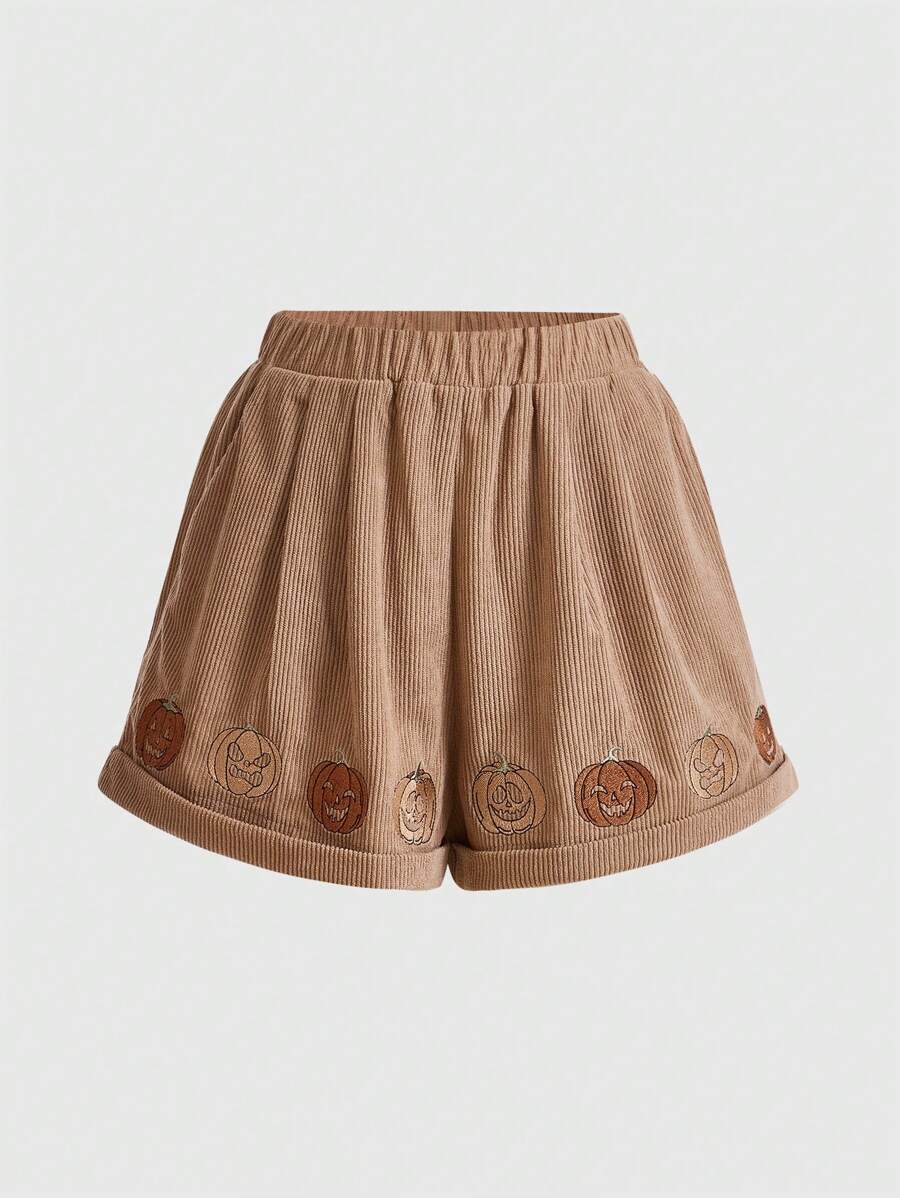 Fairycore Shorts Halloween calabaza con bordado de pana
