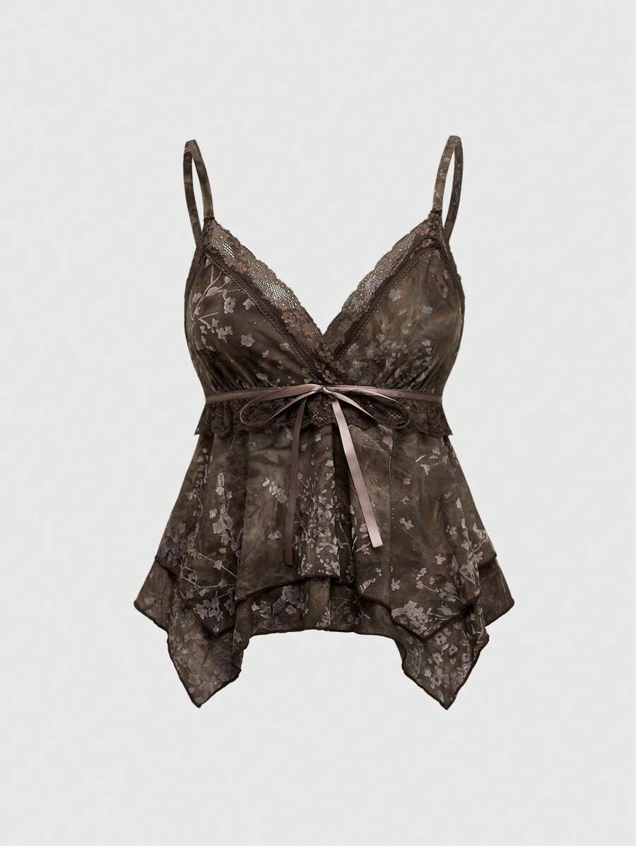 Hippie Top asimétrico sin mangas para mujer con patchwork de encaje, estilo fairycore