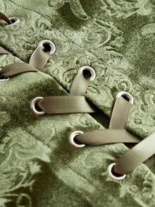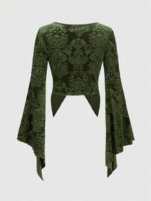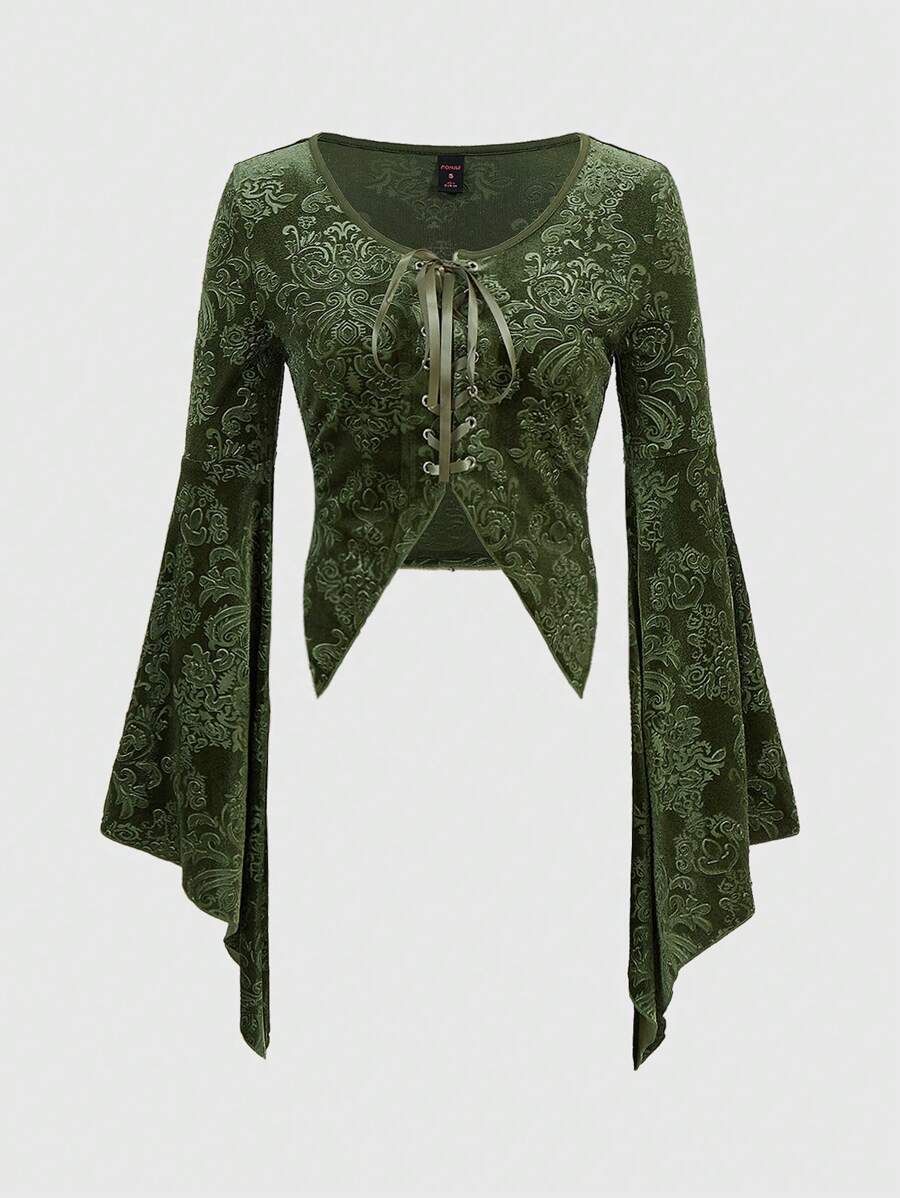 Fairycore Top con cordón delantero manga de campana bajo asimétrico jacquard