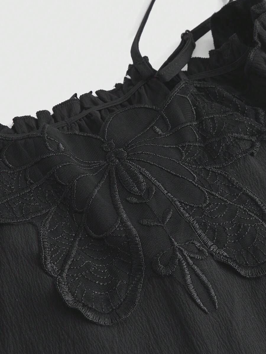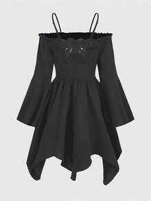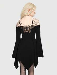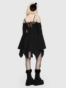 Fairycore Vestido Con Mangas Recortadas Y Paneles De Malla