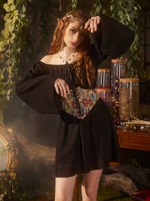 Fairycore Vestido de hombros descubiertos con corsé floral