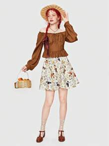 Fairycore Top crop de hombros descubiertos con nudo delantero bajo con fruncido