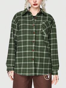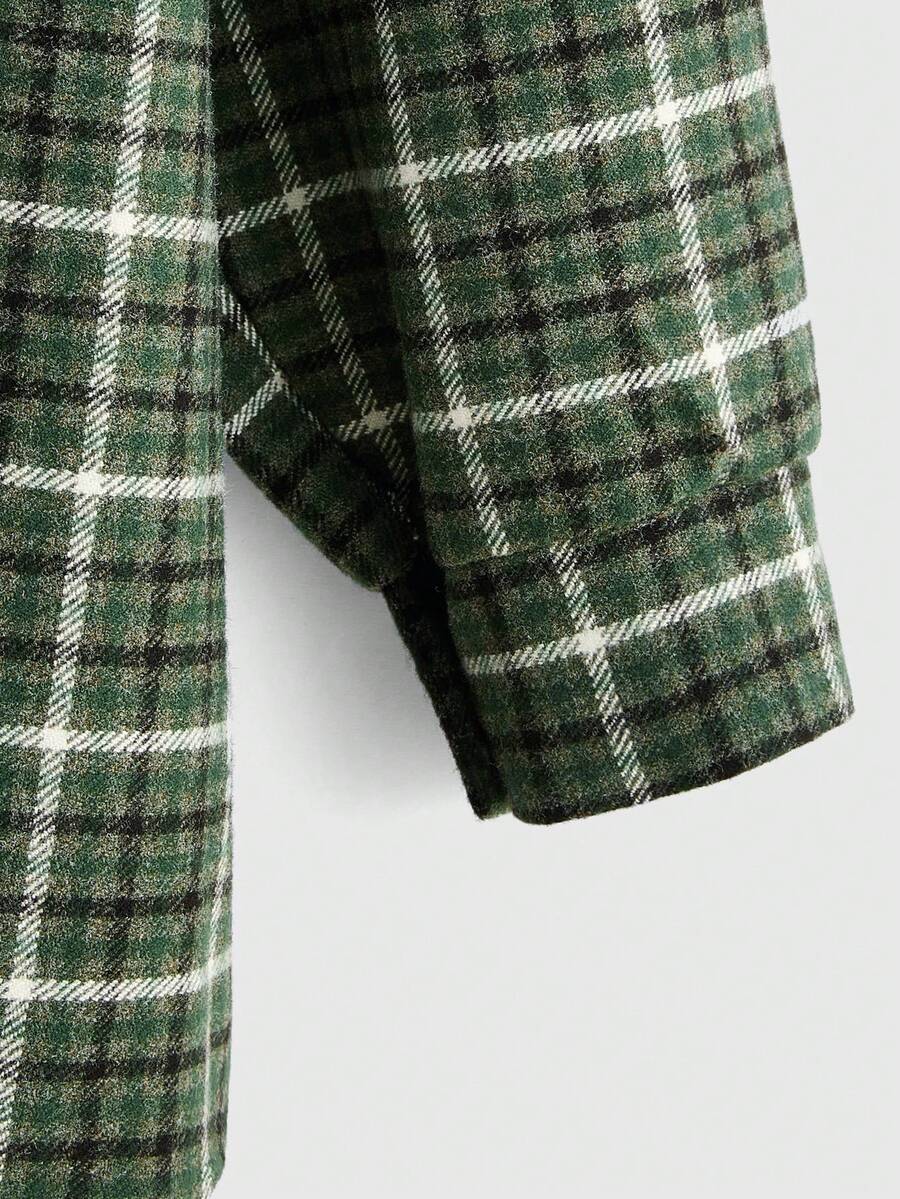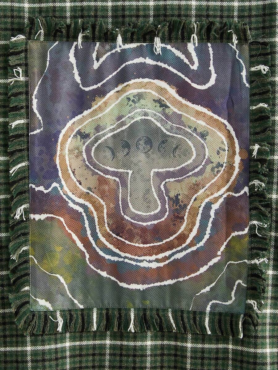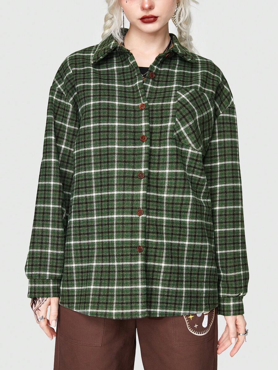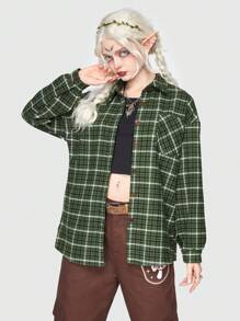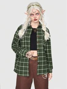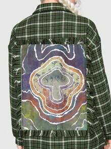 Fairycore Abrigo de cuadros & con estampado de seta de hombros caídos con parche con bolsillo