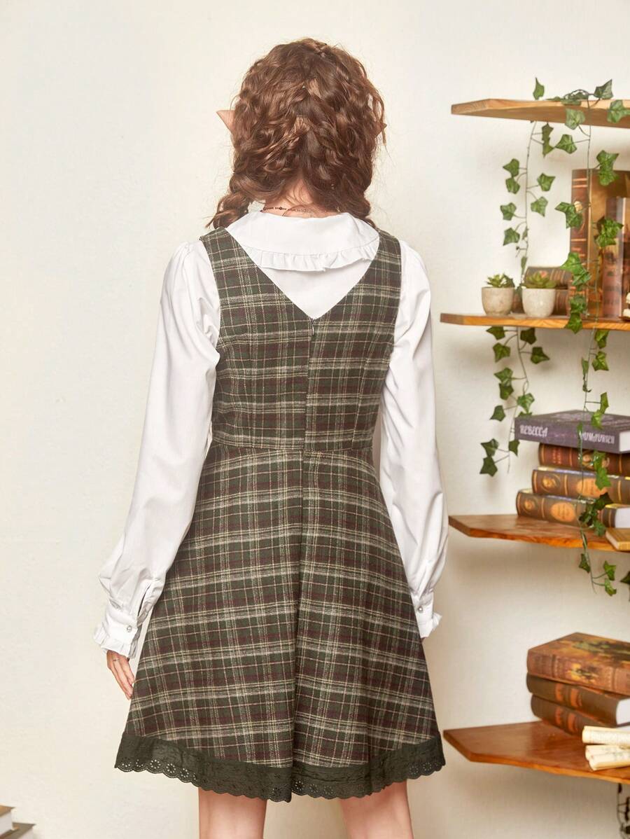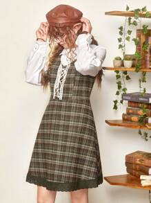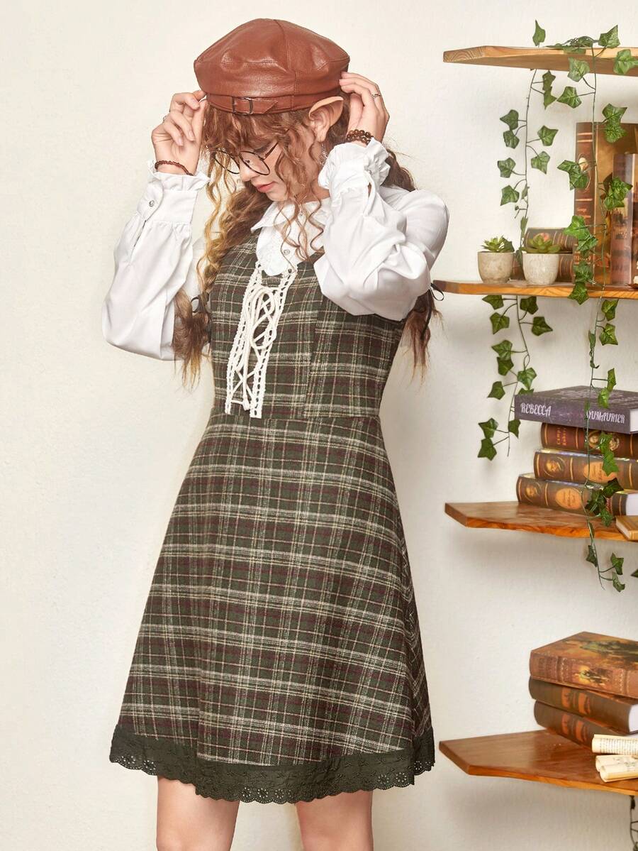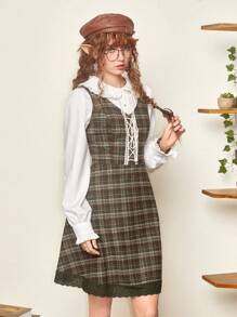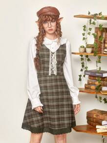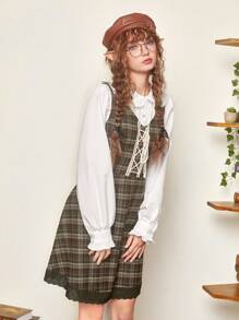 Fairycore Vestido con estampado de cuadros con cordón delantero