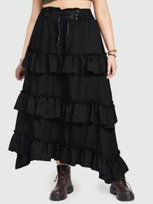 Fairycore Talla grande Falda con cordón delantero ribete con fruncido bajo asimétrico