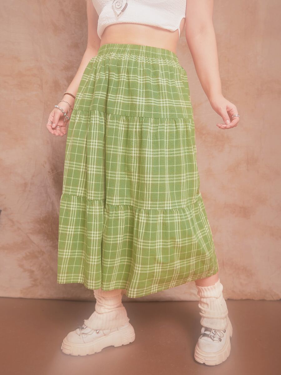 Fairycore Falda con estampado de cuadros bajo con fruncido