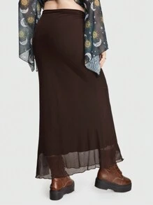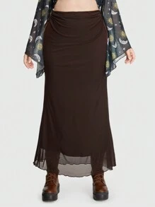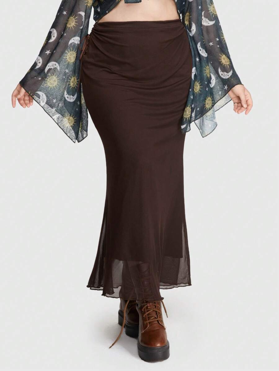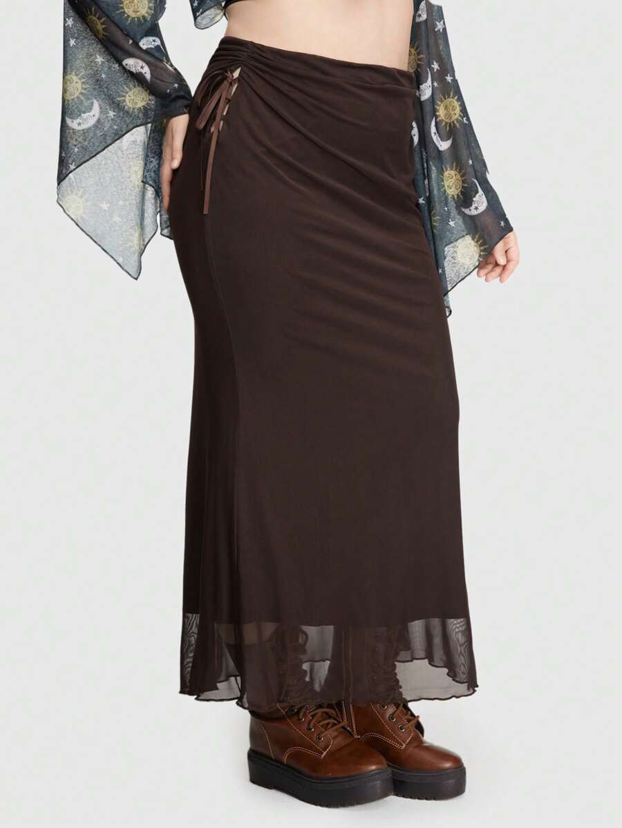 Fairycore Falda Con Lazo Lateral De Hilo De Red De Talla Grande
