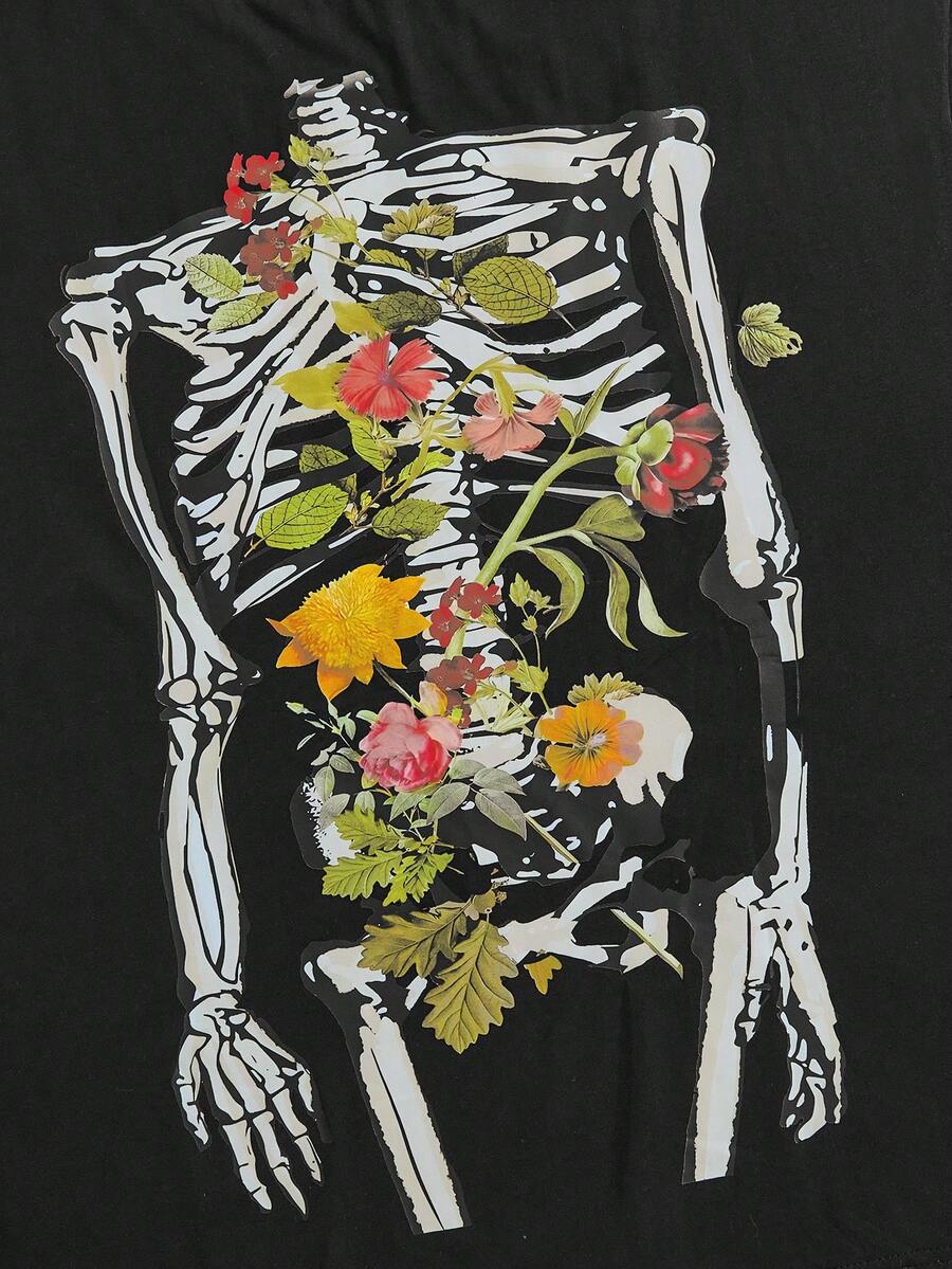Fairycore Camiseta De Manga Corta Con Estampado Floral Y Calavera De Talla Grande